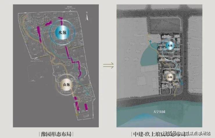 「中建·玖上琅宸」的景观灵感也同样来自豫园。整个中轴线的动线源自豫园“山脉+水脉”的布置手法,景观蜿蜒曲折,遍布下沉庭院、绿植、叠瀑和水景,未来呈现会非常震撼。