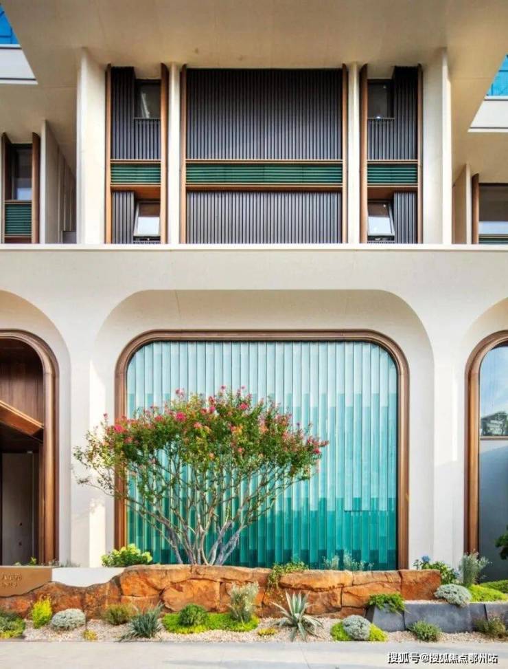 项目立面上,采用了独特的陶板+UHPC+铝板设计。相比老式豪宅的铝板,这种源自传统陶瓷工艺的材料,既能呈现自然材料的温暖肌理,又有远超铝板的耐久性与可定制性,是今天豪宅圈最in的选择。