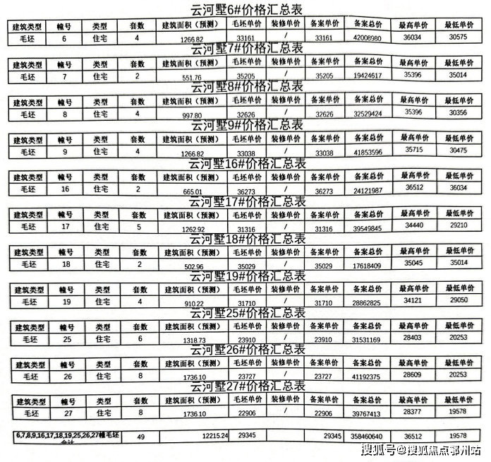 住宅一房一价表