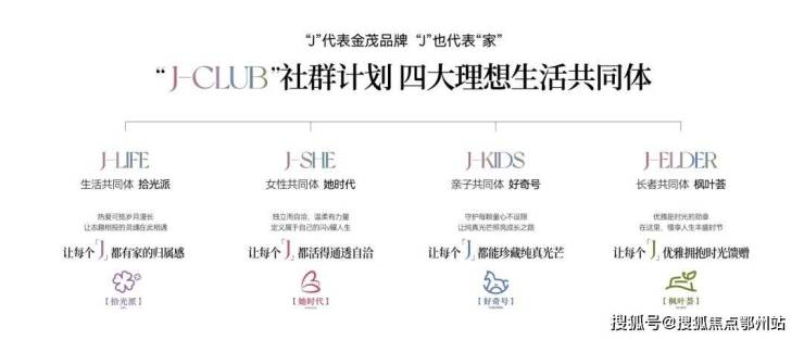 金茂“J-CLUB”社群计划打造生活共同体【拾光派】、女性共同体【她时代】、亲子共同体【好奇号】、长者共同体【枫叶荟】四大理想生活共同体,共建有温度的社区。迄今已举办近40场社群活动、汇聚瑜伽、生活美学、幼儿教育等多元领域10位专业主理人,共同执笔金彩茂美的社区新篇。