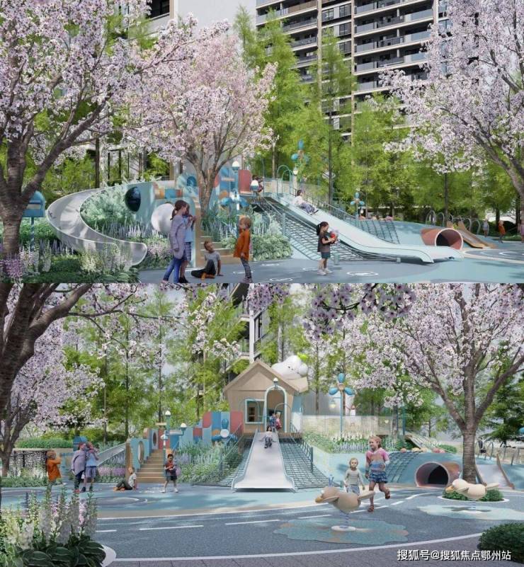 社区整体规划“两环两轴一心七园”,打造约12500㎡园区花园,下楼即享全龄生活场域,构建可生长的全龄友好乐园: