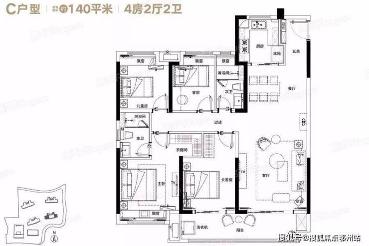户型面积有 110 平、125 平、140 平 ,精装交付,价格待定。