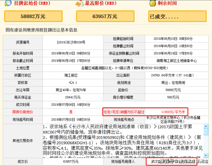 根据竞买条件, 该地块毛坯限价为11800元/平 ,成为市府板块最高限价地。