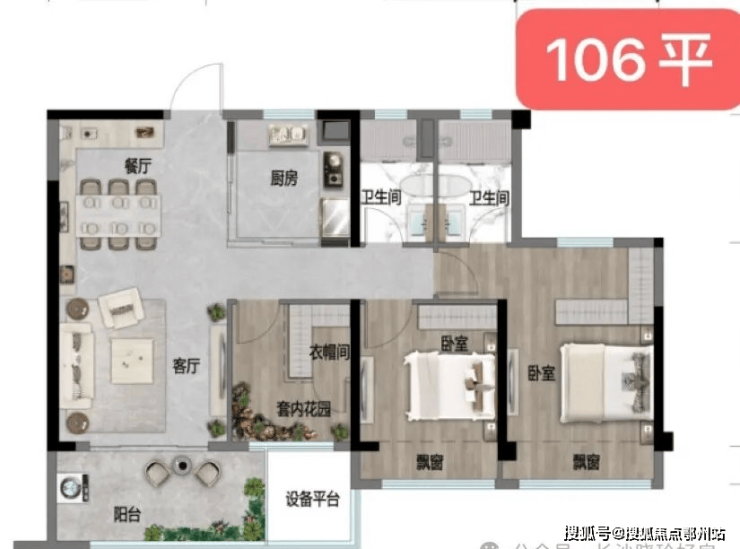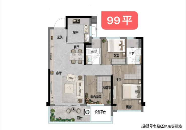 建面约99-106㎡户型,门槛最低,也是项目的年度爆品。