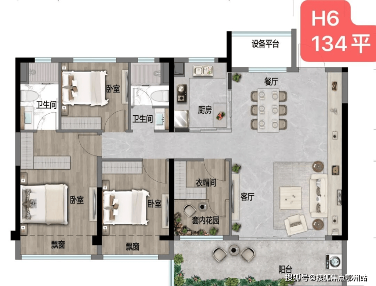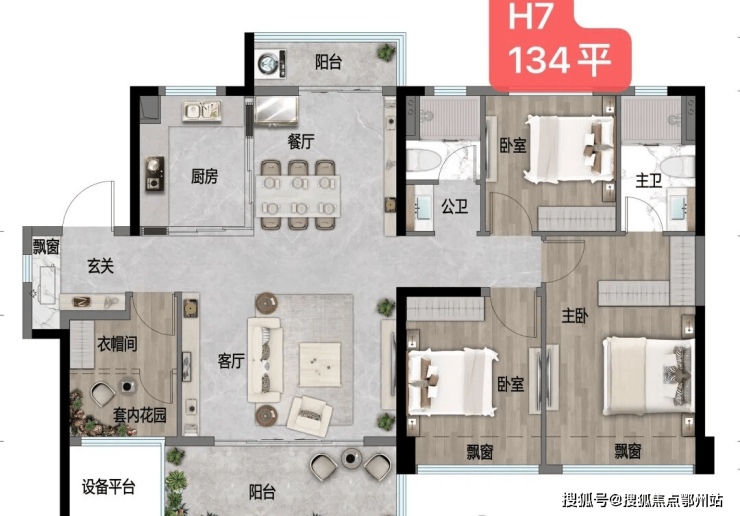 建面约134㎡户型,一步到位,适合多代同堂家庭。