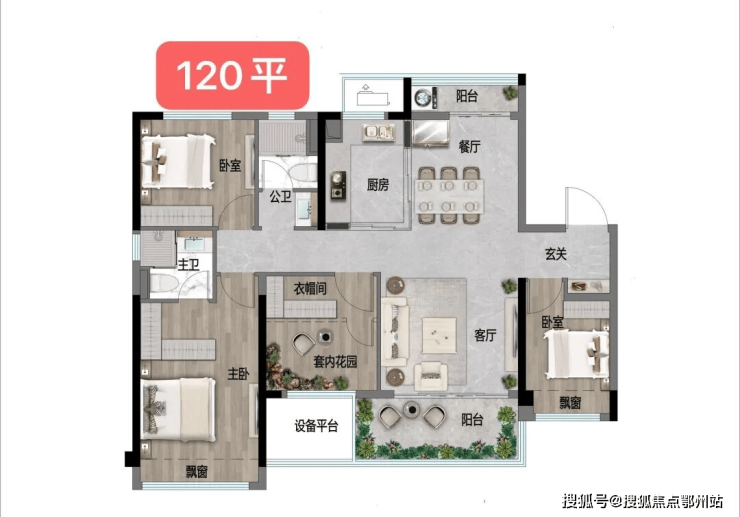 建面约120㎡户型,适合预算更充足的首置人群。