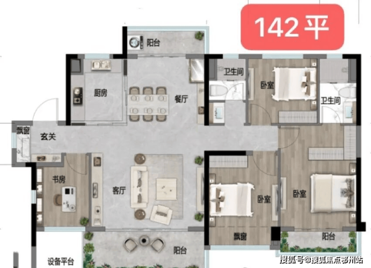 建面约142㎡户型,一步到位,适合多代同堂家庭。