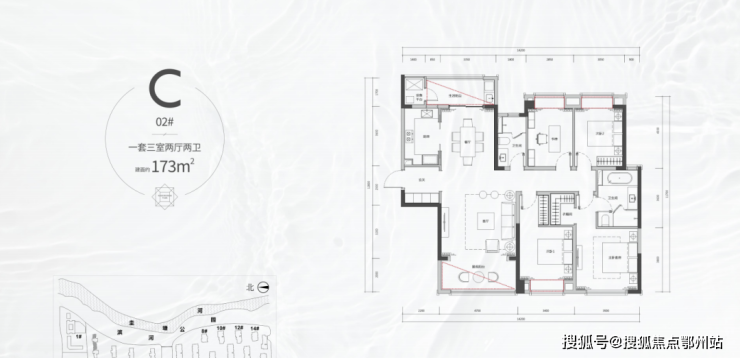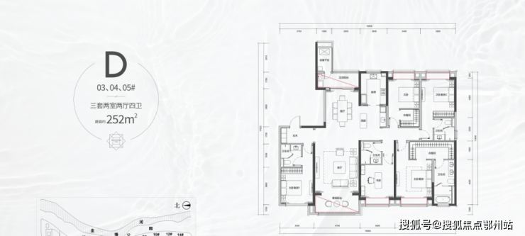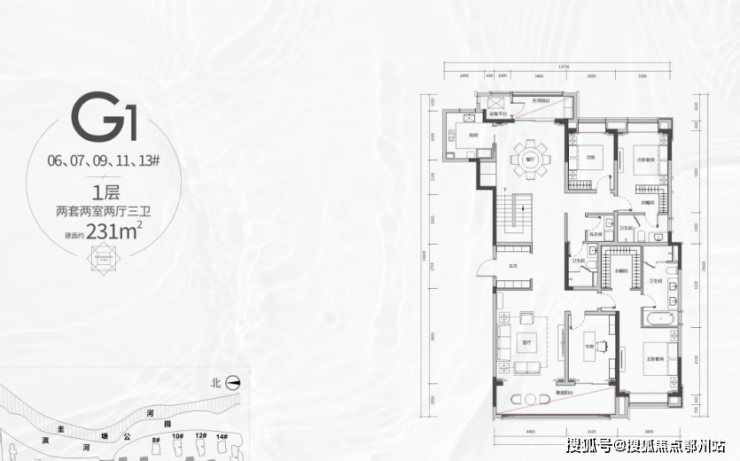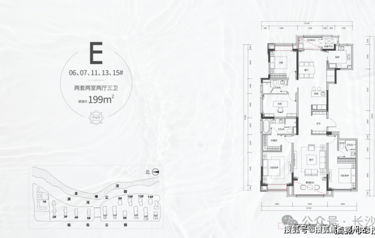 户型方正,得房率高,大面宽短进深,多重阳台、飘窗设计,3.3米层高,最小户型亦配置套房,以大尺度营造高舒适度。