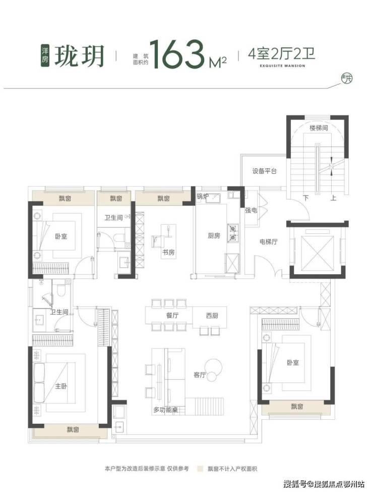 洋房:建筑面积约163㎡ | 4室2厅2卫,一梯两户/超大玄关/豪华主卧/ 干湿分离