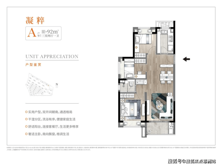 建筑面积约99㎡大三居的户型设计,远超同面积段平均水准:
