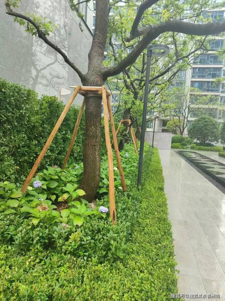 工程团队还针对不同空间使用,选择不同乔木品种,营造不同情景氛围;营造沉浸式感官体验,为居者铺叙具有归属感、自然感、仪式感的归心之旅;未来居者下楼即可社交、休闲、观景、阅读、思考,提供舒适有趣的居住环境。