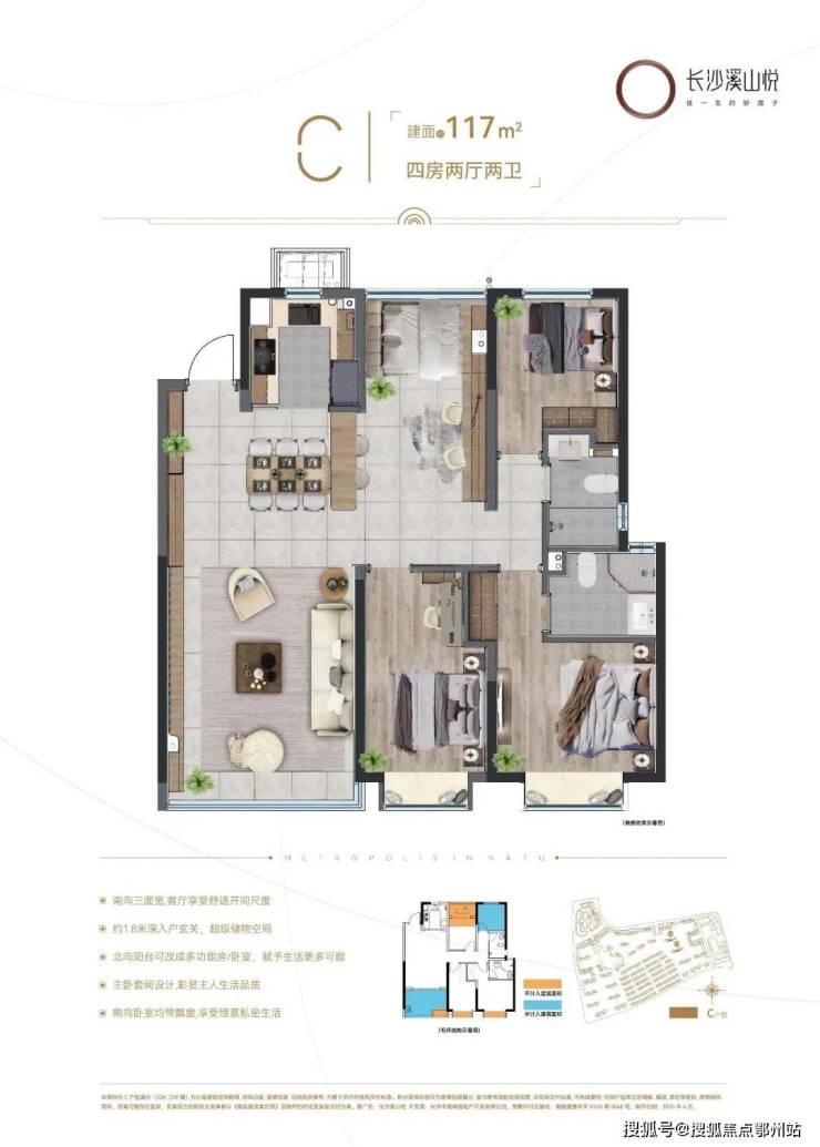作为长沙溪山悦首个新规升级产品,25#栋以突破性的90%超高得房率重新定义居住空间价值。以建面约117㎡四房为例,用新规对飘窗和阳台复制成功的计容优化,全屋拓展面积近10㎡,让同等面积多出一房空间。