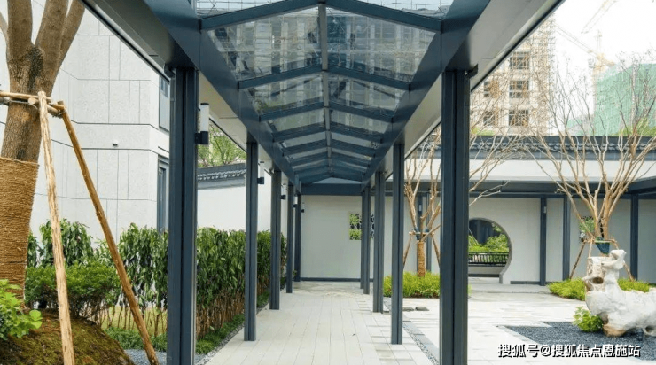 安雅苑风雨连廊采用现代风格设计,为钢结构+玻璃顶,连廊柱距约1.8米,串联着整个住宅区及颐园,不论晴雨皆可自由出行。