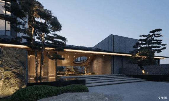 整个建筑外立面更是将现代美学融入。石材+铝板+大面积玻璃的组合,赋予空间前所未有的通透与灵动。就像是一件艺术品,兼具东方韵味和现代质感。