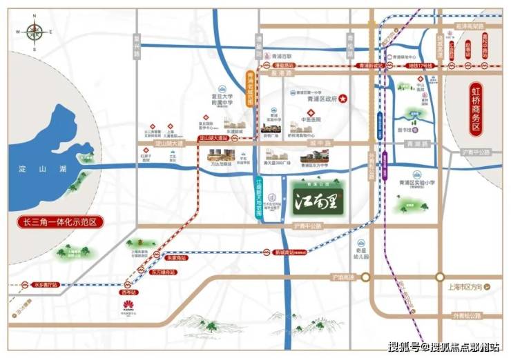 上海主城:大虹桥直线距离约26km,朱家角景区直线距离约7.8km,淀山湖直线距离约8km