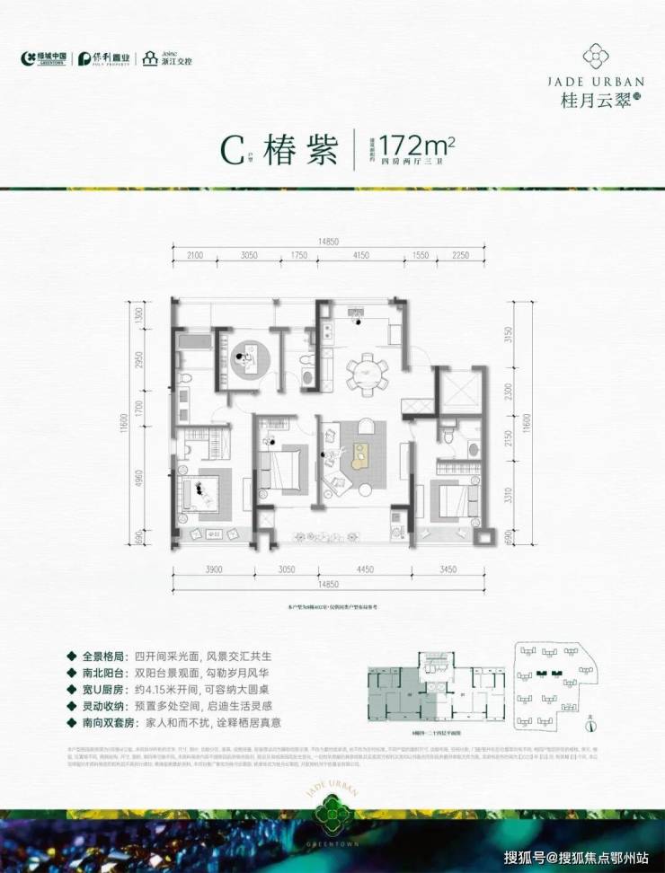 绿地率:35%, 可售:1130户, 面积:建面约98㎡、110㎡、119㎡、139㎡、172㎡,