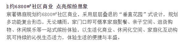 项目自带约6800㎡潮流商业,以生活化商业、休闲化空间、家庭化互动构筑可持续的沁悦生态活力,为业主带来家门口的多维美好生活圈。