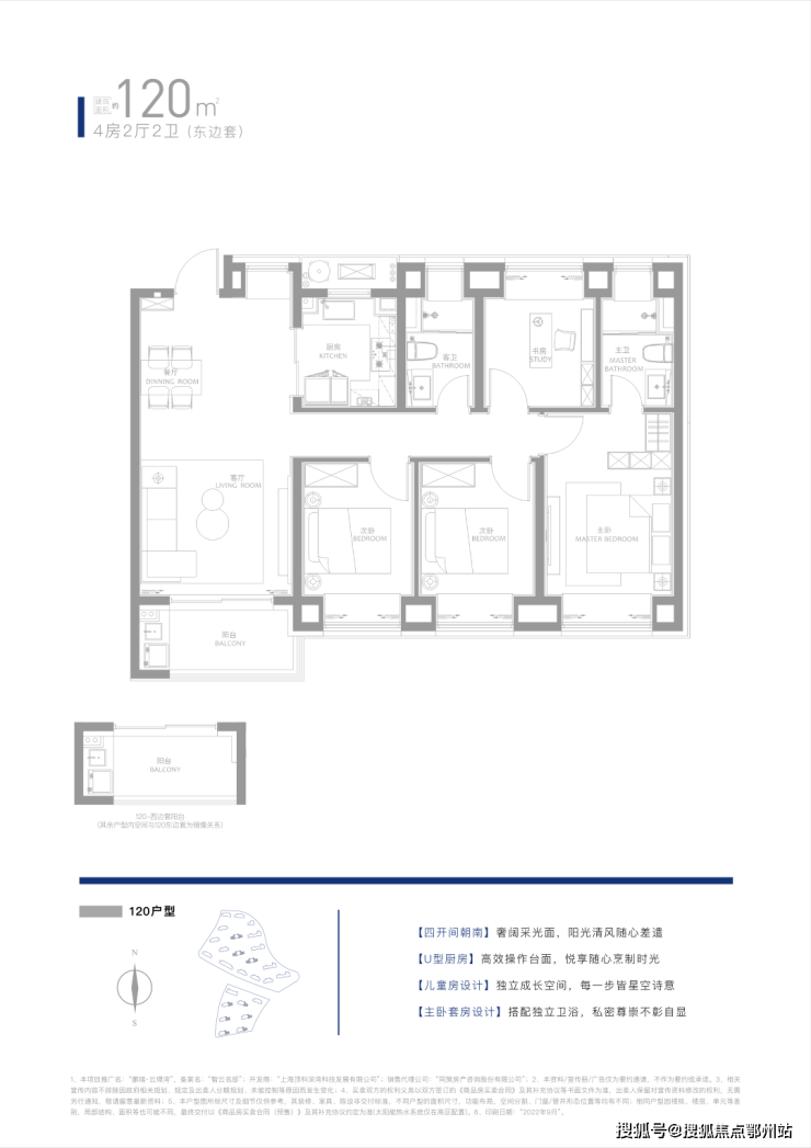 在户型设计上,优享建面约120㎡四房,不仅尺度阔绰,功能空间齐全,也满足了成长家庭的选择。