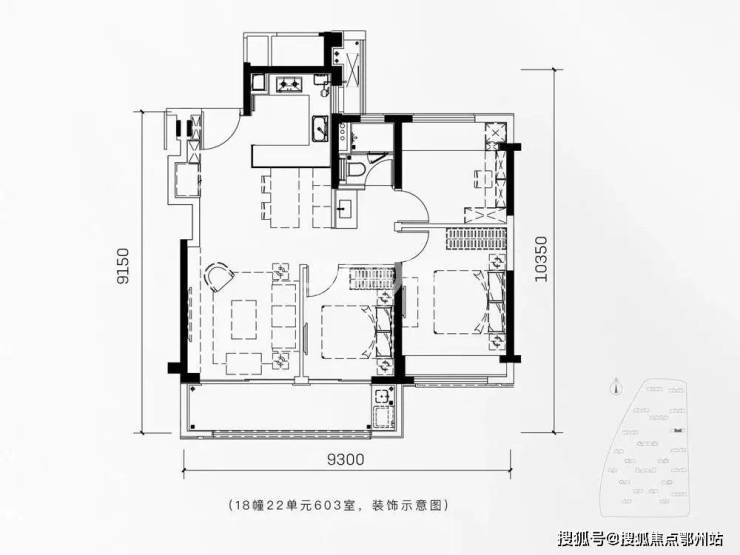 96㎡户型:三开间朝南,南北通透,9.3 米向阳面宽,采光好,6 米宽双阳台,视野开阔,户型方正,预留可变空间,贴合不同家庭具体需求。