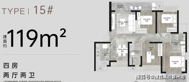 建面约119㎡改善王炸级四房,非常适合考虑内环滨江但注重性价比的家庭。