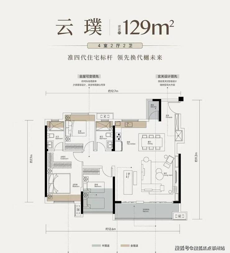 云璞户型建面约129平四室两厅两卫:此户型位于边户,南北通透,也是非常常见的边户,不过就129平这个面积段能做成四房,也是把功能性发挥到了极致!