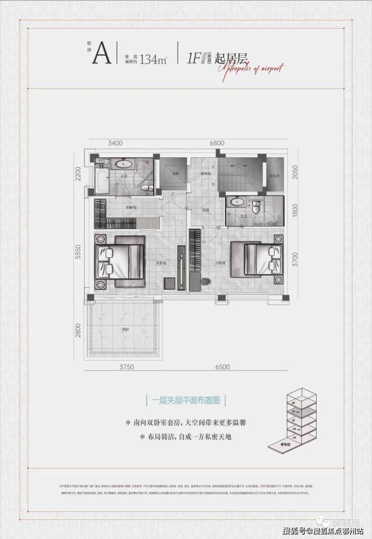 1F“起居层”实际为地上第2层,均设计有2个卧室+卫浴的大套房;
