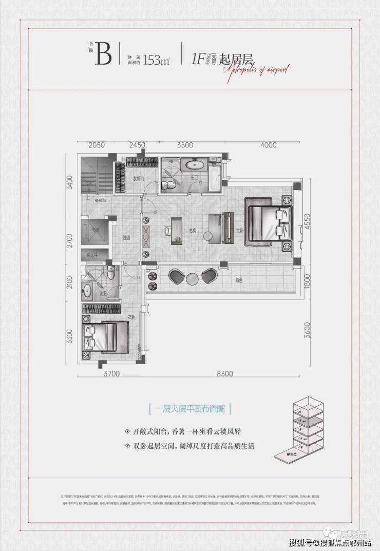 2F“私享层”实际为地上第3层,设计为主卧+衣帽间+卫浴+书房+露台的奢侈大套房。
