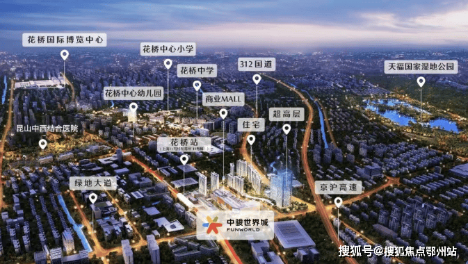 花桥的中骏世界城与11号线&苏州S1(建设中)花桥站0距离。