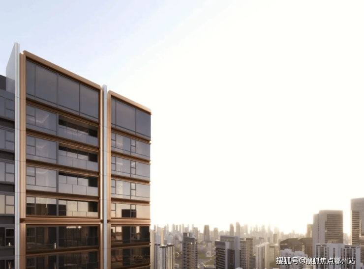 立面采用玻璃幕墙与铜色铝板,270°转角飘窗、主卧全景落地窗设计,打造极简美学地标。