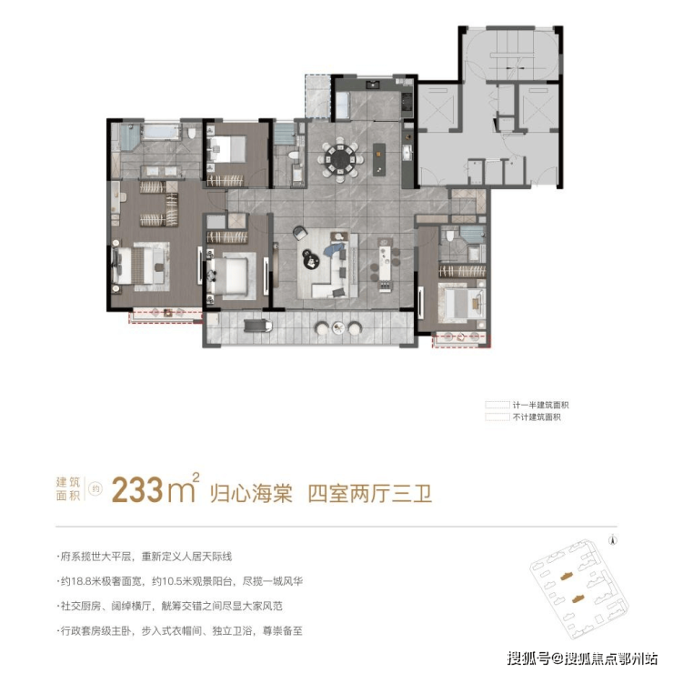 约18.8米极境面宽四开间向阳,颠覆传统大尺度空间;