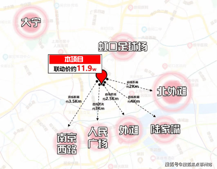 项目直线距离人民广场约3公里,直线距离外滩约2.5公里,直线距离南京西路约3.2公里,直线距离陆家嘴也仅约3公里,直线距离北外滩更是仅约2公里。同时背靠虹口龙之梦商圈和大宁商圈。