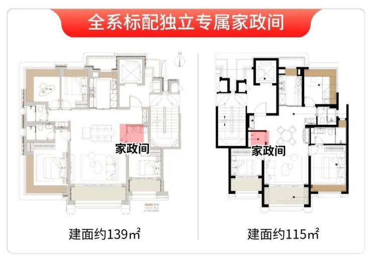 新人本主义 : 项目全系标配全屋飘窗+类一梯一户电梯厅。115㎡户型赠送面积约11㎡, 实得率约93% ; 139㎡户型赠送约13.4㎡, 实得率高达95% 。 139㎡户型更采用约5.2米奢阔横厅、LDKB一体化设计,边套主卧与书房双270°环幕视野,将中央风貌区尽收眼底。