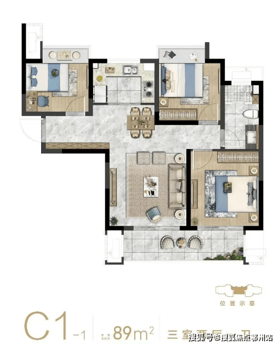 二期毛坯高层:主力户型有 89㎡的两居室,全明设计,动静分区;99-120㎡的三居室,南北通透,双卫布局;141㎡的四居室,大横厅,主卧套房。