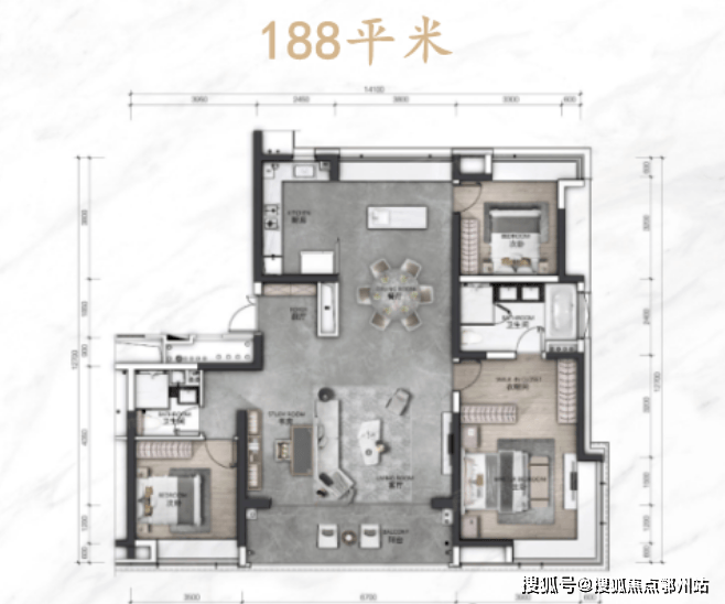 武汉瑞府占地面积约5.3万方,总建面约21.5万方,容积率4.0,共991户,住宅机动车停车位1859个,车位比约1:1.87,包含9栋住宅楼,约3205㎡商业,以及1所幼儿园。项目共三个地块,有空中连廊将其连在一起。