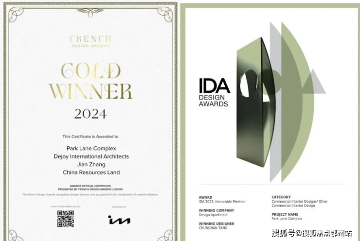 并被克而瑞评选为“2023年全国十大高端作品”;2024年更是荣获2024法国设计大奖金奖、2023美国IDA国际设计大奖
