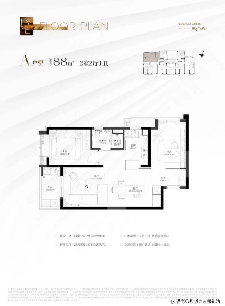 建筑面积约88㎡2房A户型:千万级预算买进苏河湾核心位置的绝版机遇,地段控闭眼冲!