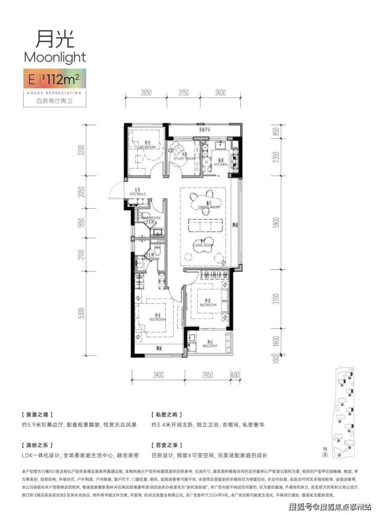 建面约112方E户型: