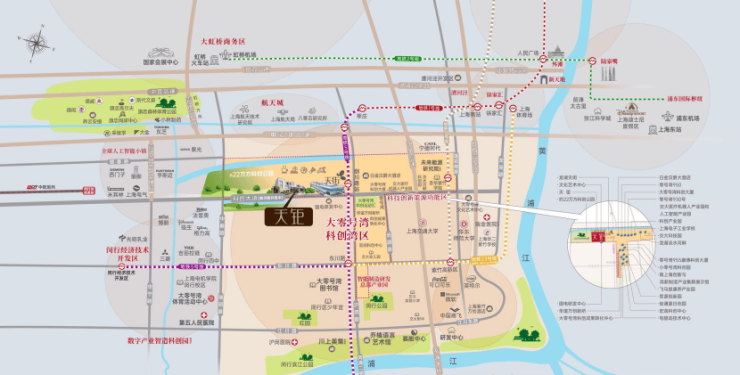 龙湖天钜另一个亮点是以(公共交通导向发展)模式的深度开发。项目无缝对接 地铁5号线剑川路站,步行仅需300米。 5站即可直达莘庄换乘1号线, 30分钟通达徐家汇、前滩等核心商圈。
