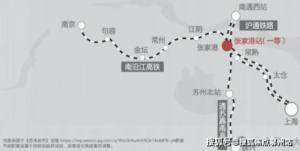 高铁枢纽:张家港站(直线距离约3.5公里),1小时长三角通勤圈,深度融入上海“半小时经济圈”;
