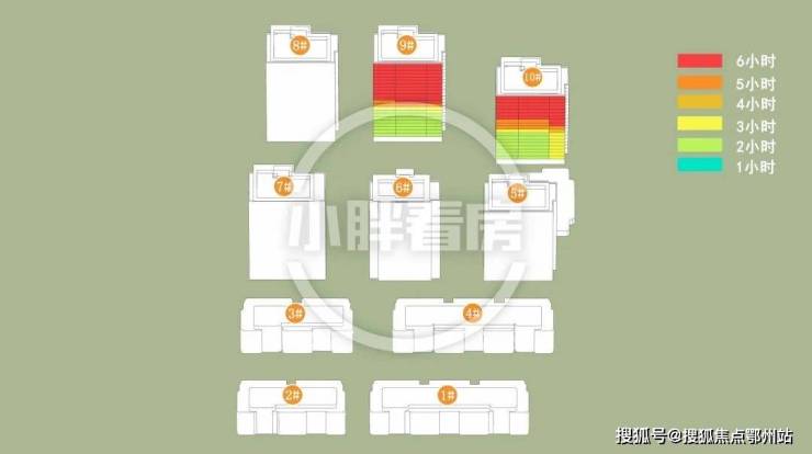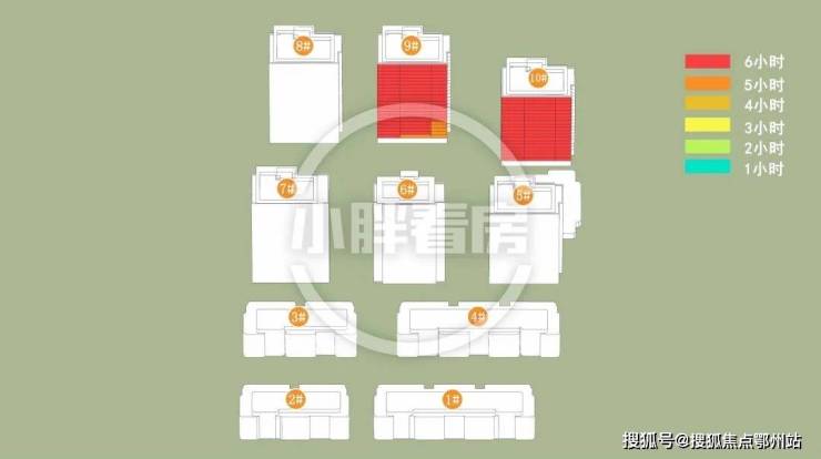 9#10#中低层受遮挡。就具体遮挡时间而言,9#全天不同时段均会受到遮挡。10#主要在中午和下午受5#6#遮挡。