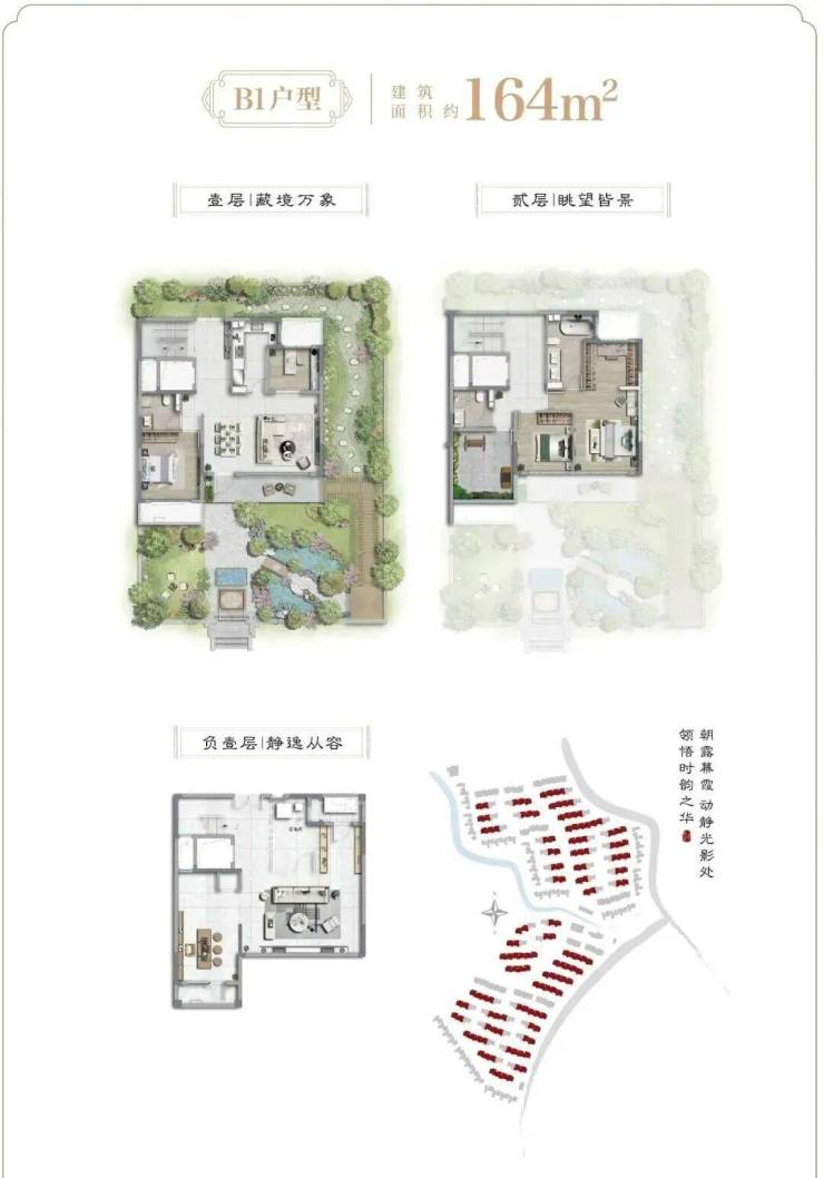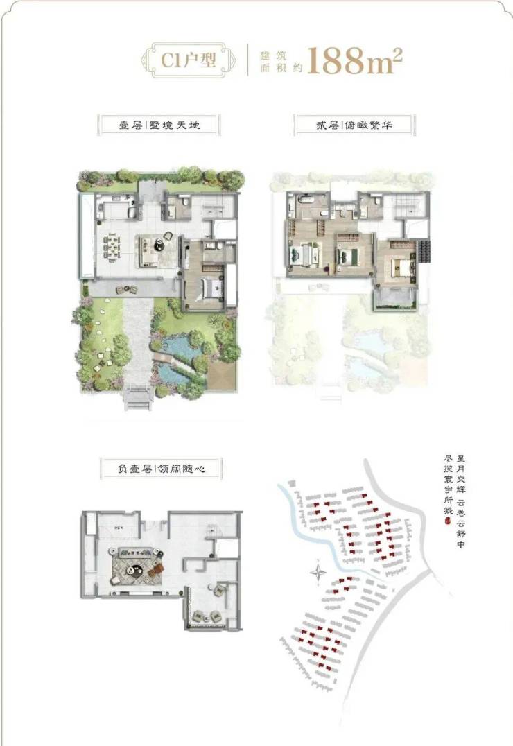 从户型设计上看: 建面约138-188㎡联排与建面约211-214㎡院墅产品,庭前绿地,大面宽,地上仅2层,真正的低密宽境别墅,产品力断层式领先。