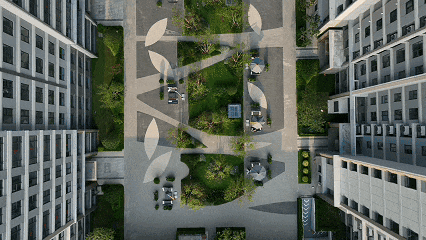 让钢筋水泥为花草树木留出空间,在园区内 打造九大宅间花园,错落分布于各楼宇之间,根据不同的主题布局不同的绿植。