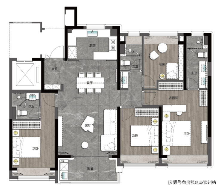双主卧套房设计,四开间朝南。