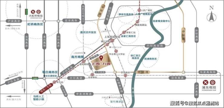 还有 三座枢纽交通,交通优势明显: 铁路上海南站(项目东北侧约4公里,车程9分钟)、 虹桥交通枢纽(项目西南侧约18公里,车程25分钟)、 浦东交通枢纽(项目东侧约33公里,车程40分钟)。