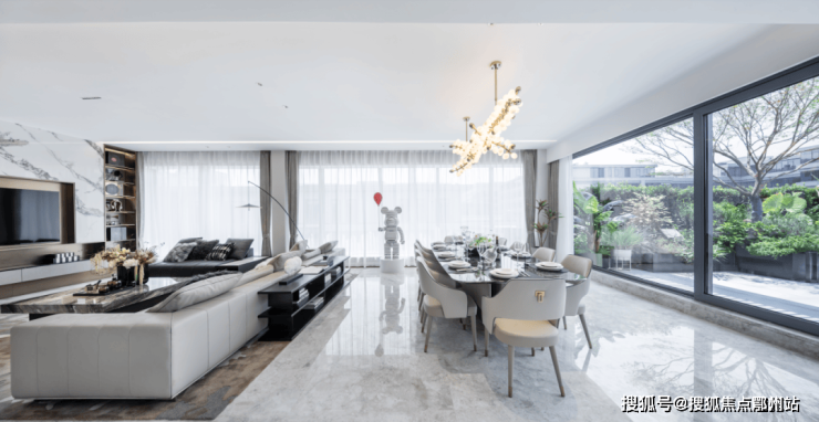客厅在多重材质的组合下,顺畅融汇 秩序井然素雅的基调来自比例的精准把控和色彩的考究搭配,克制之间彰显出游刃有余的平衡之道!