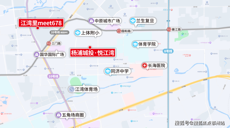 杨浦城投·悦江湾与20号线国和路站 (规划中) 直线距离仅约400米,与10号线三门路站直线距离仅约800米 ,出行非常便利。