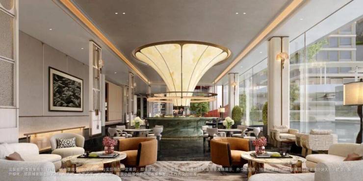 还有12米高的艺术水幕旋梯,同频市区鼎豪的艺术交通核;同频伦敦The Whiteley奢华酒店的中央车站式归家,让地下落客如酒店大堂般明亮从容。