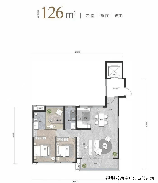 建面约126平边户,居住体验完爆传统建面约150平户型。