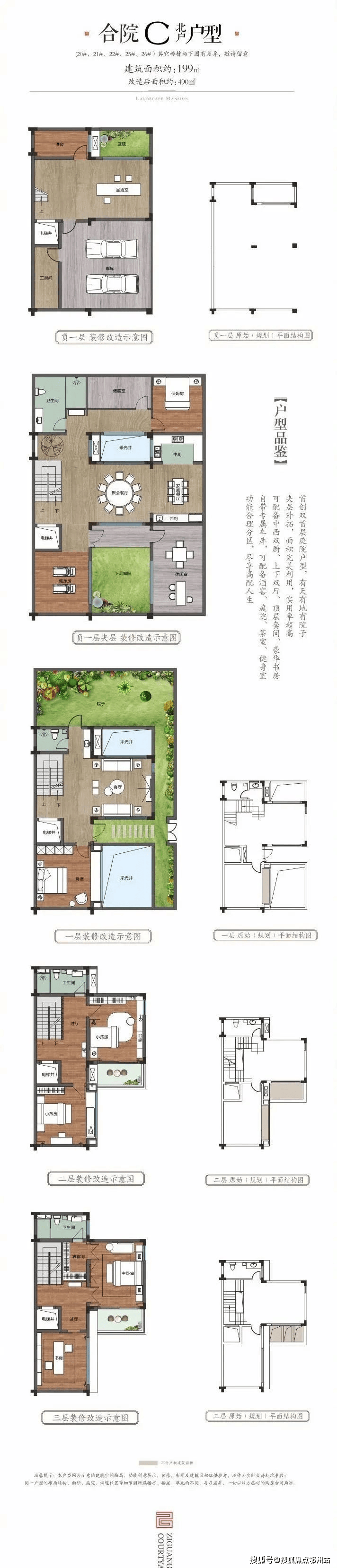 ①A户型买228㎡改造后实用590㎡带130㎡庭院