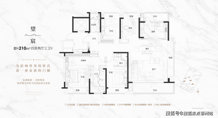 310㎡顶奢户型:两梯一户、层高3.5米、独立玄关+270°观景窗